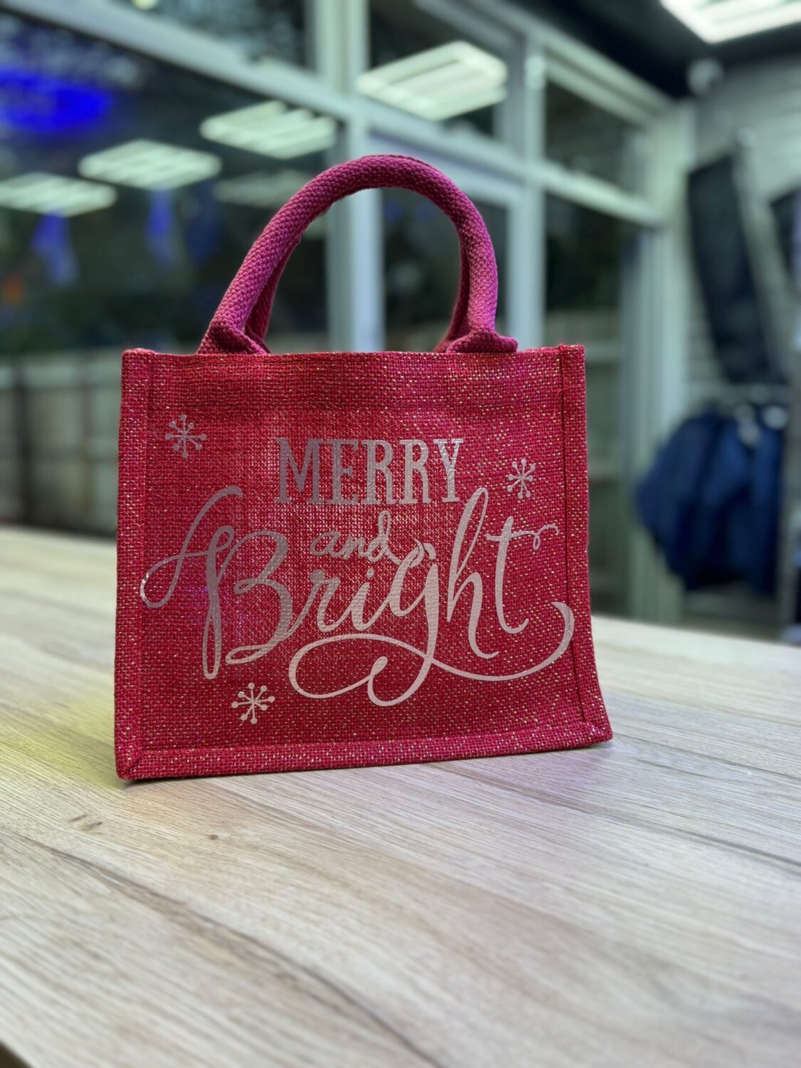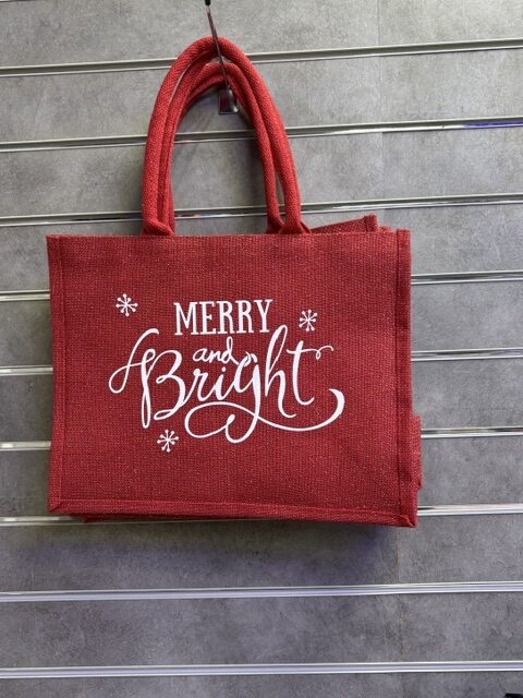 Tis The Season Christmas Red Shimmer Jute Shopper bag